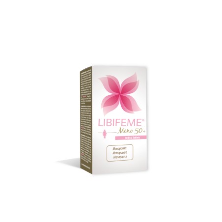 LIBIFEME Meno 50+ es un complemento alimenticio 100% natural para mujeres premenopáusicas y menopáusicas (Mujeres con niveles bajos de estrógenos).